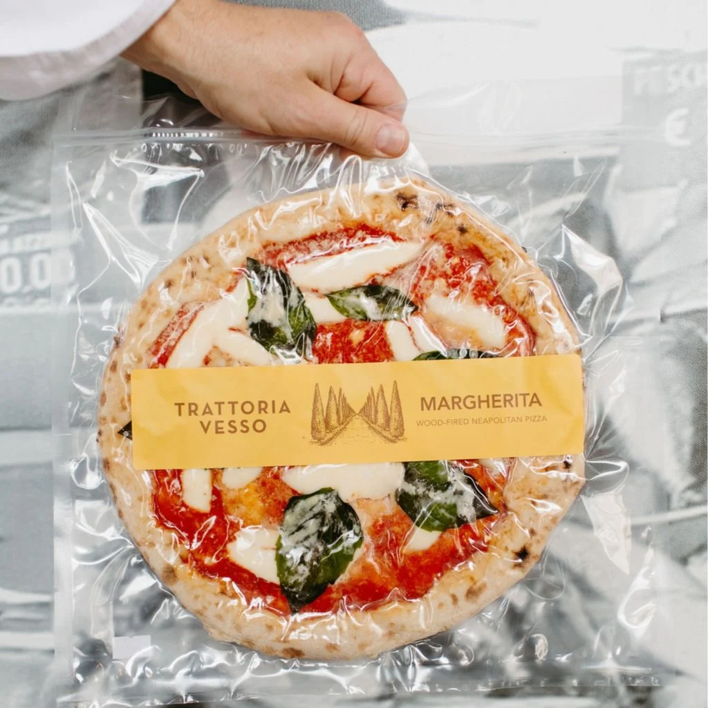 Enjoy Trattoria Vesso’s authentic Neapolitan pizza cooked right at home, with fresh (never frozen) packaged pizzas ready for your oven. Available for purchase in our downtown Halifax Italian restaurant or at fine markets around Nova Scotia.